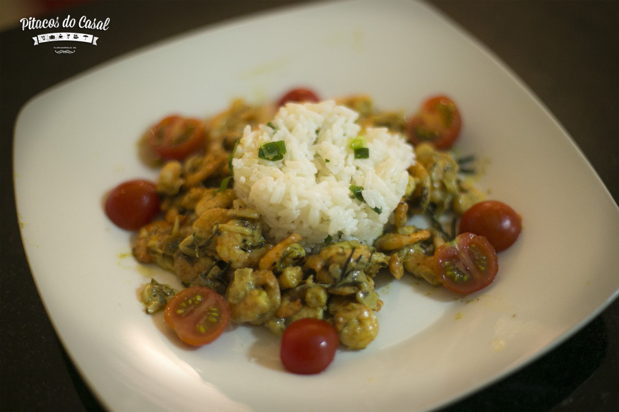 Nossa ideia inicial era fazer o camarão com massa, mas nossa amiga convidada não come glúten, então o Marcos vez essa versão com arroz e ficou show! De quebra é uma boa opção também para celíacos.