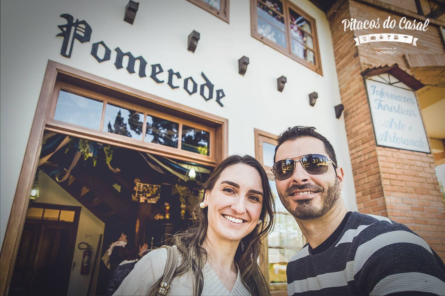 Ficamos na Pousada Pomerode, antiga residência da família da proprietária Rosita, que hoje hospeda turistas. Adoramos nosso quarto. Para quem vai no frio, não se preocupe, tem ar quente e chuveiro a gás bem quente! O café da manhã é servido na área comum, com direito a cuca alemã e strudel de queijo.