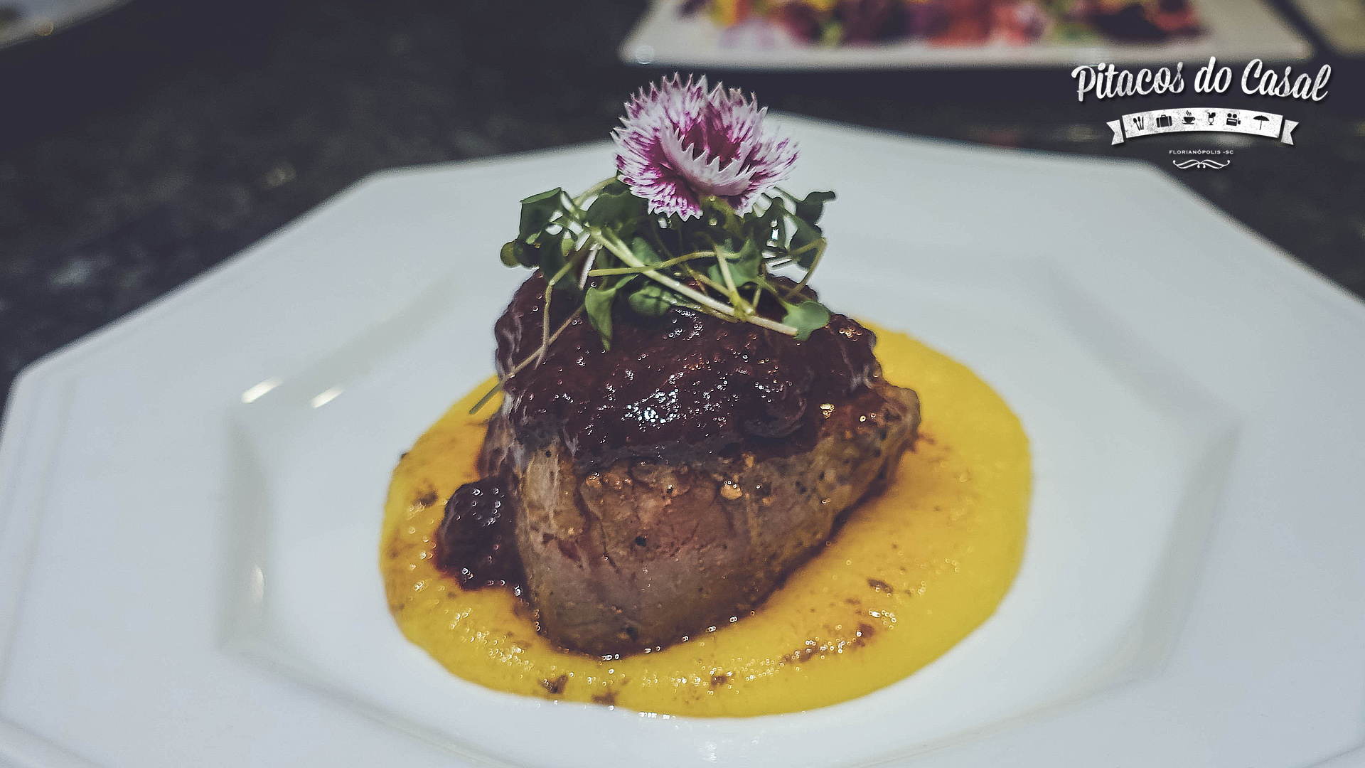 MIGNON AO MOLHO DE FRUTAS VERMELHAS COM TÂMARAS E MOUSSELINE DE BAROA PERFURADA COM GENGIBRE