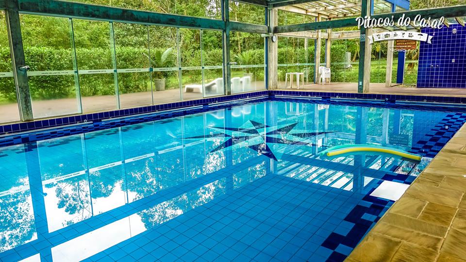 São duas piscinas externas – uma para adultos e outra infantil – mas nós ficamos na de crianças mesmo, com a Dorinha, foi uma delícia! Tem também uma piscina coberta, que nos foi muito útil, já que pegamos tempo feio, mas pudemos aproveitar a piscina quentinha e protegida.