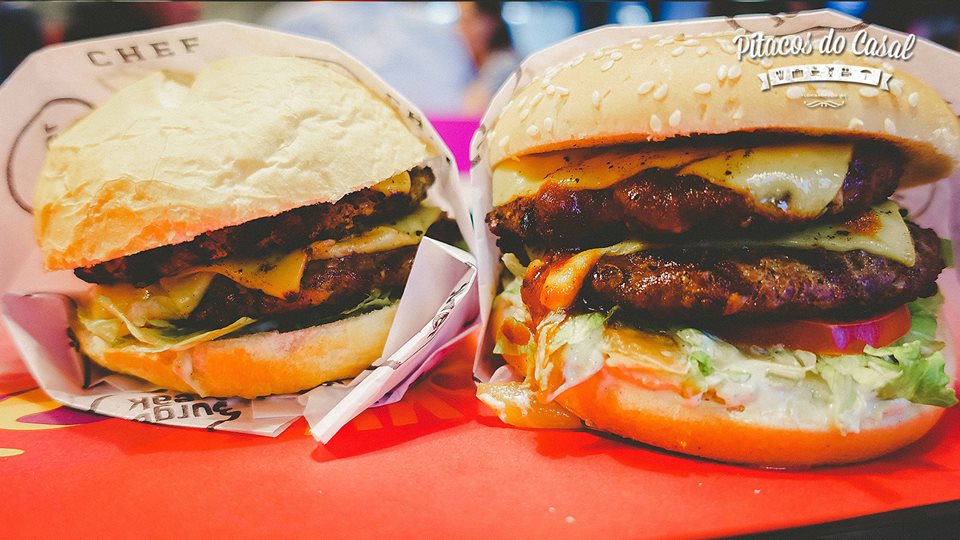 O Burger Break Chef leva dois hamburgueres de 120g, queijo suíço, alface, tomate, molho BBQ, maionese artesanal e cebola caramelizada. O Burger Break Bacon leva um hamburguer de 180g, e os mesmos ingredientes do Chef, trocando a cebola por tiras de bacon. A carne dos burgers é suculenta, saborosa, e já vale a pedida de qualquer dos burgers de carne.