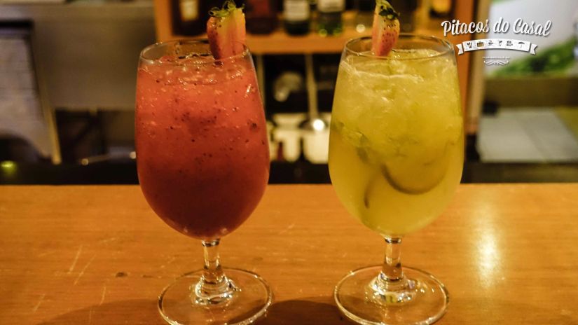 Provamos alguns drinks da casa: saquerinha de morango, caipirinha tradicional e mojitos, drinks refrescantes que combinam com a leveza do sushi.