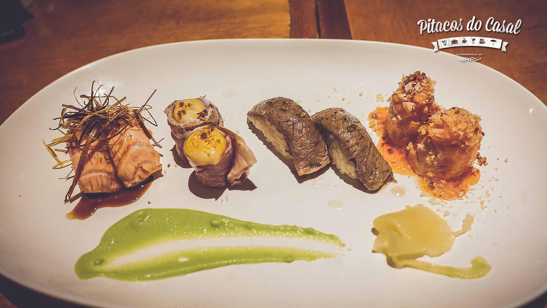 Não é só mais uma casa de sushis em Floripa. Na verdade, é toda uma experiência gastronômica diferente do que estamos acostumados ao pedir o tradicional sushi/sashimi de salmão. O Kanpai vai além e apresenta sushis especiais, com molhos e iguarias, que dão um ar mais refinado aos pratos.
