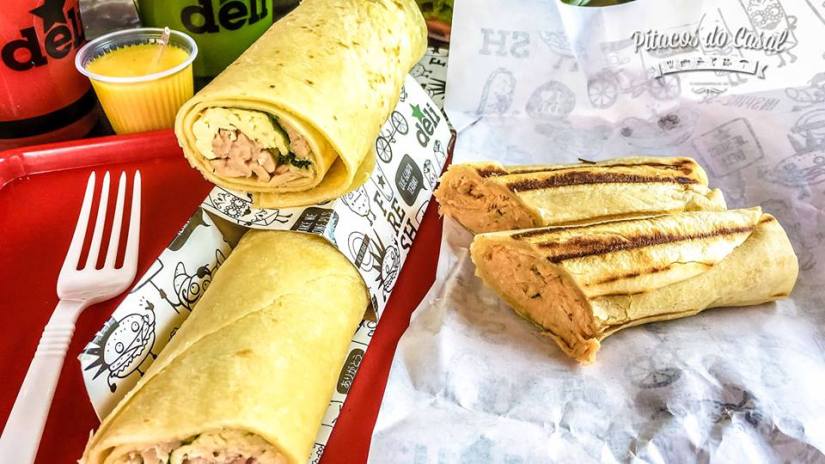 Fomos conhecer num sábado, em horário de almoço, e talvez por isso não tivesse muitas opções disponíveis, já que a loja fecha sábado a tarde e só reabre na segunda-feira. Escolhemos uma salada de frango com molho de mostarda e mel, um wrap frio de peito de peru, um wrap quente de frango com requeijão e uma coxinha funcional de frango. O frango da salada estava bem temperadinho, a coxinha bem sequinha, e entre os wraps, o quente foi o preferido.