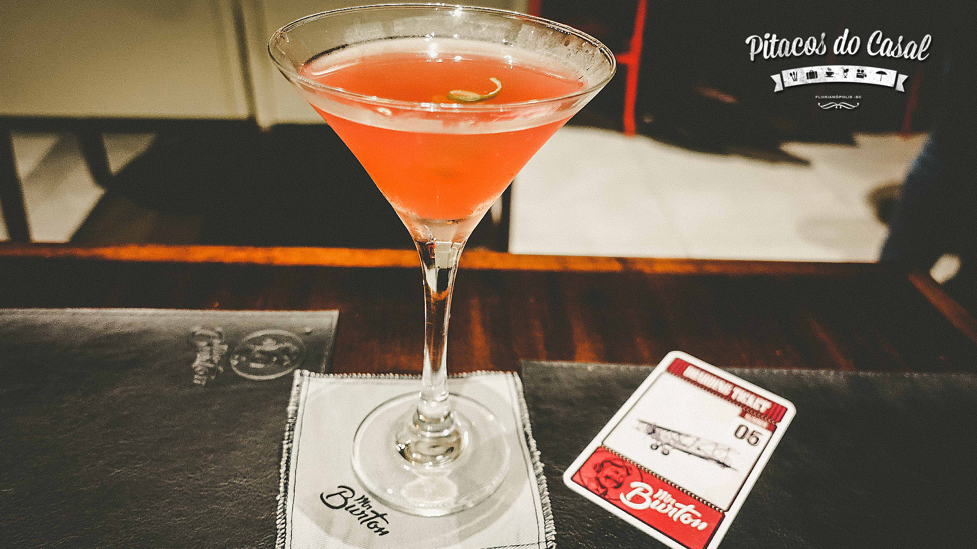 A princípio não pediríamos o Cosmopolitan, mas olha que gostamos, preparado com vodka, suco de cramberry, cointreau e finalizado com limão.