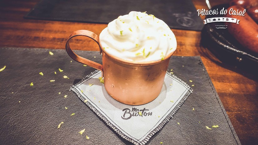 Moscow Mule eu (Jo) nunca tinha provado… e virei fã! Um drink com inspiração russa, típico nos Estados Unidos, com vodka, xarope de gengibre, finalizado com espumante de gengibre e limão. Lembra uma caipirinha, mas mais docinha, acredito que por conta da espuma.