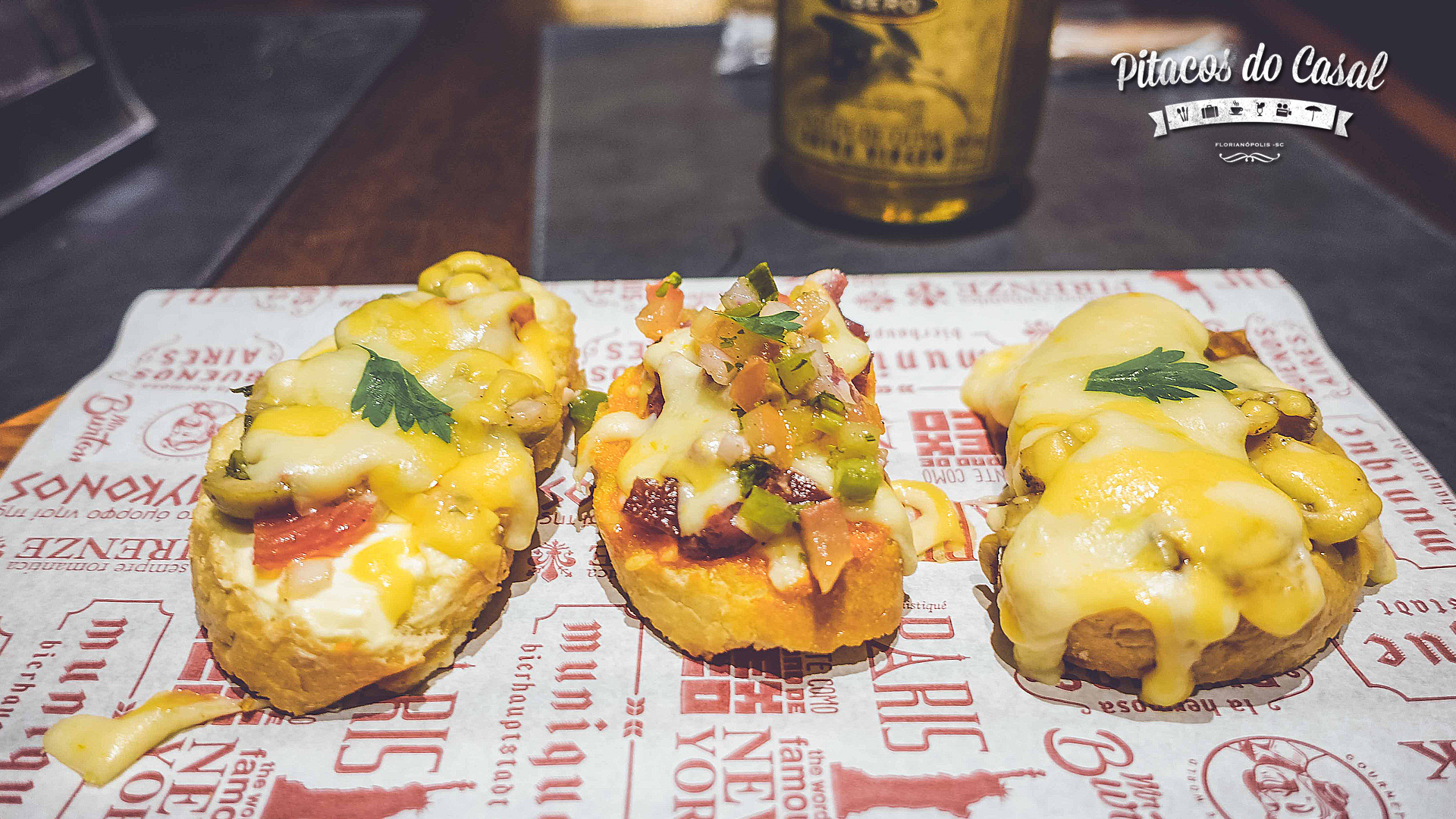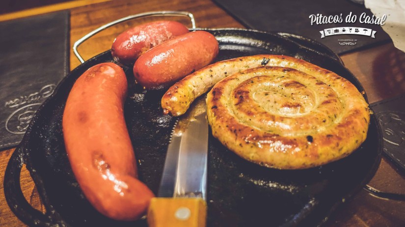 Para início dos trabalhos, a casa oferece como entradas Seleção de linguiças artesanais, Batata Rústica e Trio Burton Toast. A seleção de linguiças traz três tipos de linguiças, acompanhadas de molho dijon, molho barbecue com curry e pão ciabatta fatiado. São uma delícia, e mesmo os molhos sendo gostosos, preferi apreciá-las purinhas, pois são bem saborosas. Aliás, para quem quiser visitar a casa para fazer um happy hour, já vale pedir a seleção de linguiças e uns drinks! O Trio Burton Toast e a Batata Rústica não ficam para trás. O Trio traz três tipos de brusquetas, com cogumelos, linguiça blumenau e tomate e azeitona, e a Batata é temperada com alecrim e sal grosso, tudo bem saboroso.