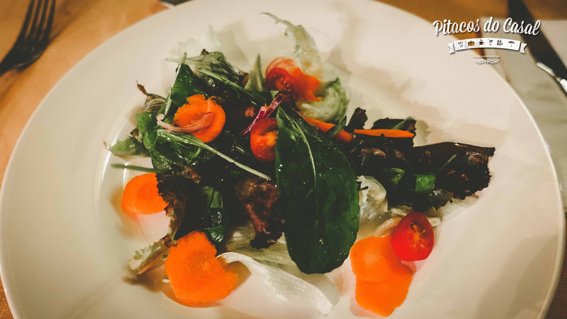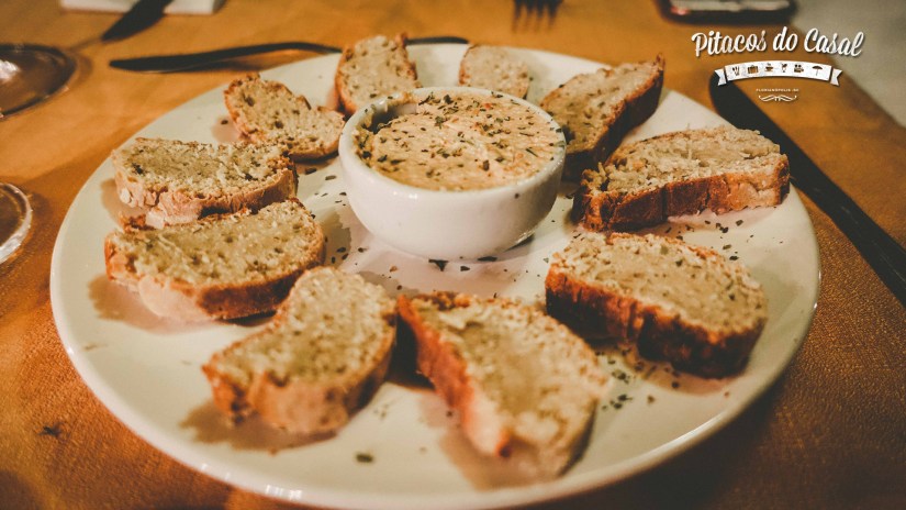 Fomos recepcionados com pãezinhos com patê de tomate seco e frango e em seguida foi servida a salada.