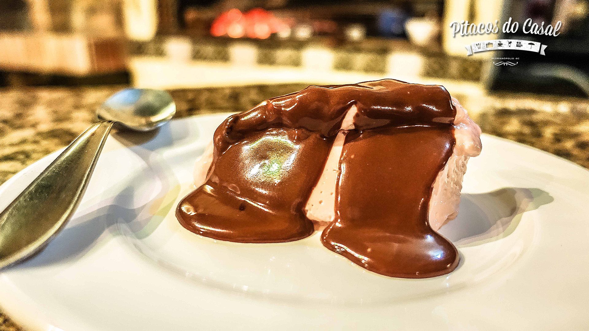 Como sobremesa foi servida uma mousse de morango com ganache de chocolate.