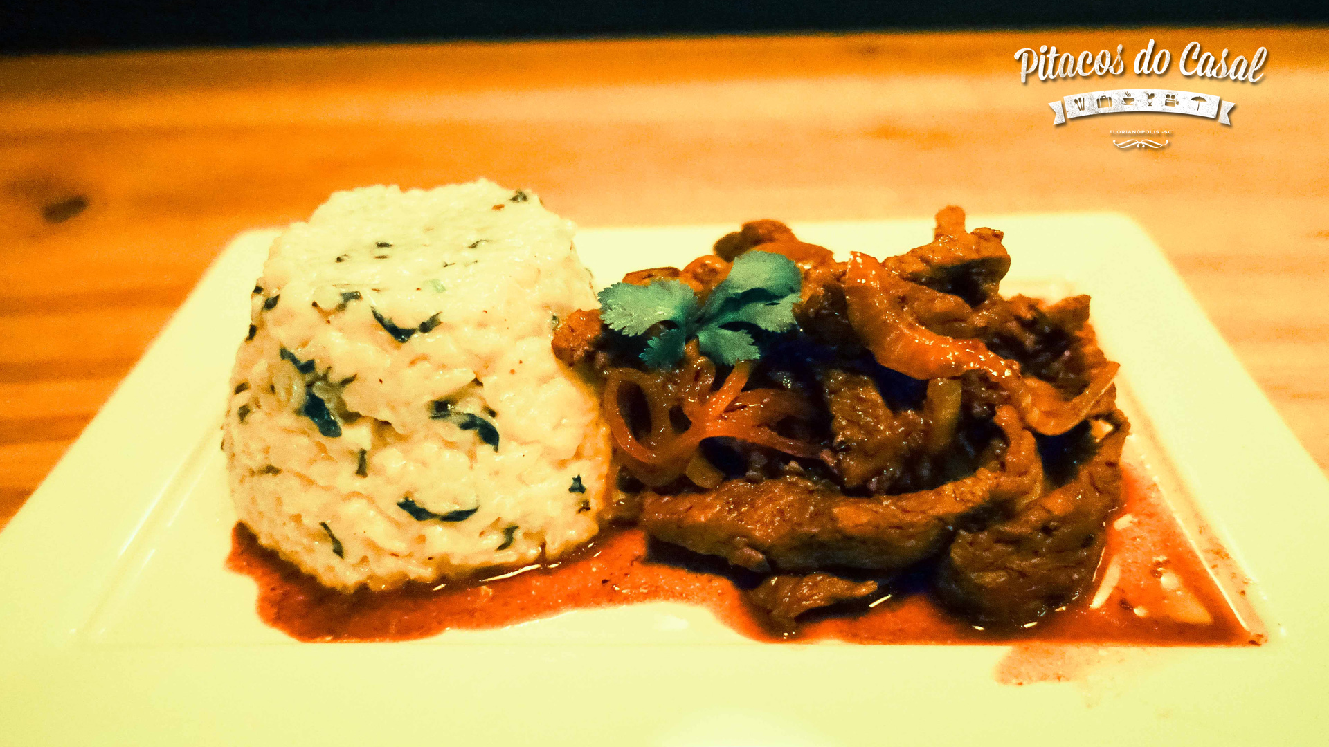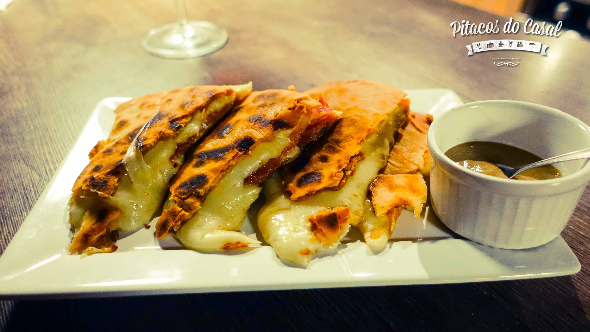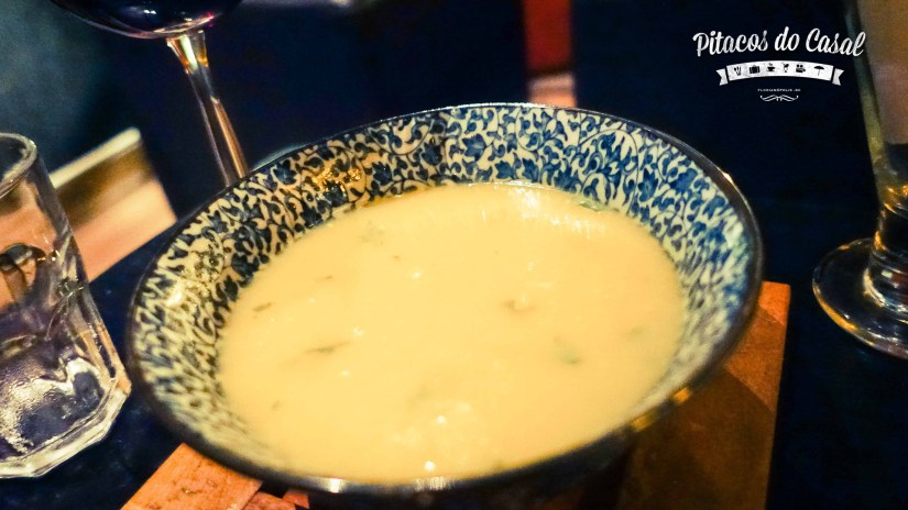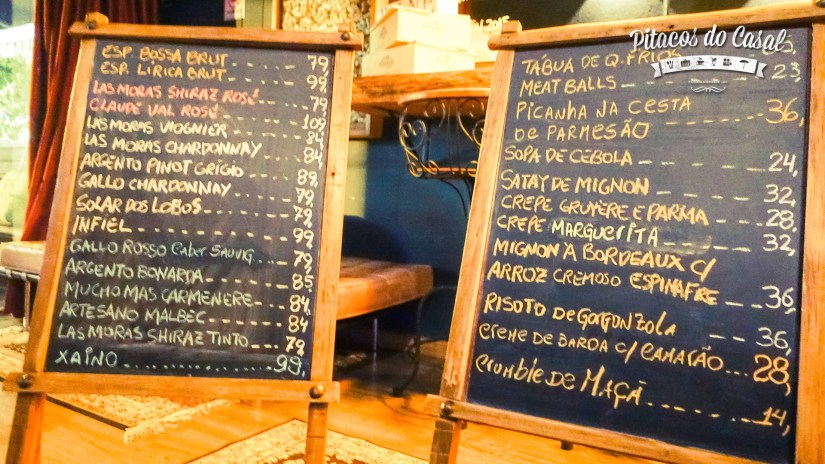 Fomos conhecer um pouco desse cardápio, e com o friozinho chegando em Florianópolis, optamos por vinho tinto. Ficamos com o vinho “da noite”, servido em taças, que era o vinho português Foral de Meda 2013, da Quinta Vale D’Aldeia. A proprietária Silvia comentou que este é várias vezes o vinho “da noite”, a pedidos dos clientes.