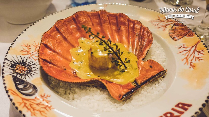 Começamos pelas entradas Cesta de pães com patê de peixe e patê de lagosta, Tartar de peixe com caviar de tapioca, Ostra ao natural e Ceviche de Ostra, Polvo a provençal, pastel de berbigão e vieiras. Lembrando de tudo isso ao escrever, já quero voltar e degustar tudo novamente! Tudo muito saboroso, bem preparado e com uma linda apresentação. O tartar de peixe e a vieira estavam leves, o polvo super macio e bem temperado. Até o pastel de berbigão que provavelmente não seria uma escolha minha, adorei! Escolher o preferido? Tarefa árdua.