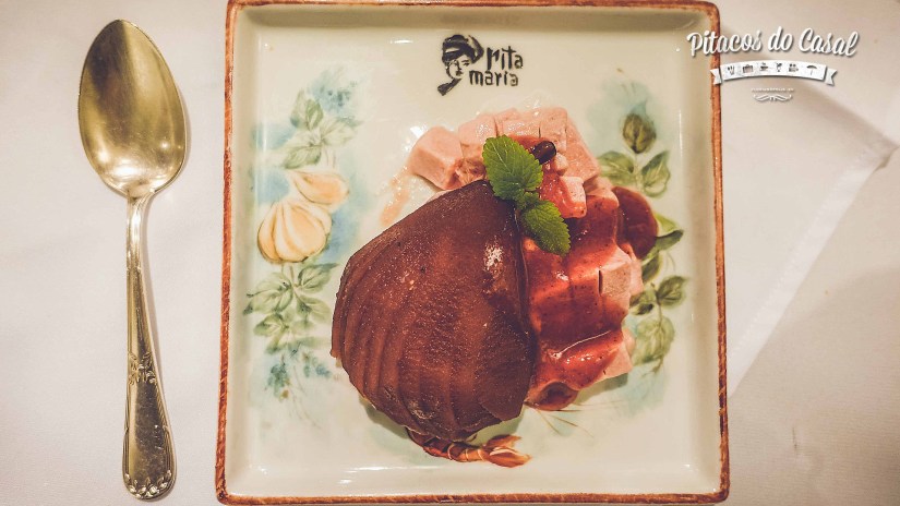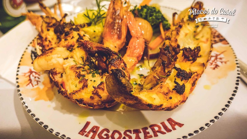 O prato principal foi uma mescla das opções de crustáceos da casa: meia lagosta, meia cavaquinha e um camarão grelhados, arroz de ovas e legumes. A lagosta é o carro chefe, mas a cavaquinha roubou a cena. As duas estavam gostosas e bem temperadas, porém achei a cavaquinha mais macia, o que agradou mais. Quanto aos sabores, tudo agradou, mas o pitaco do casal é optar pela cavaquinha como principal!