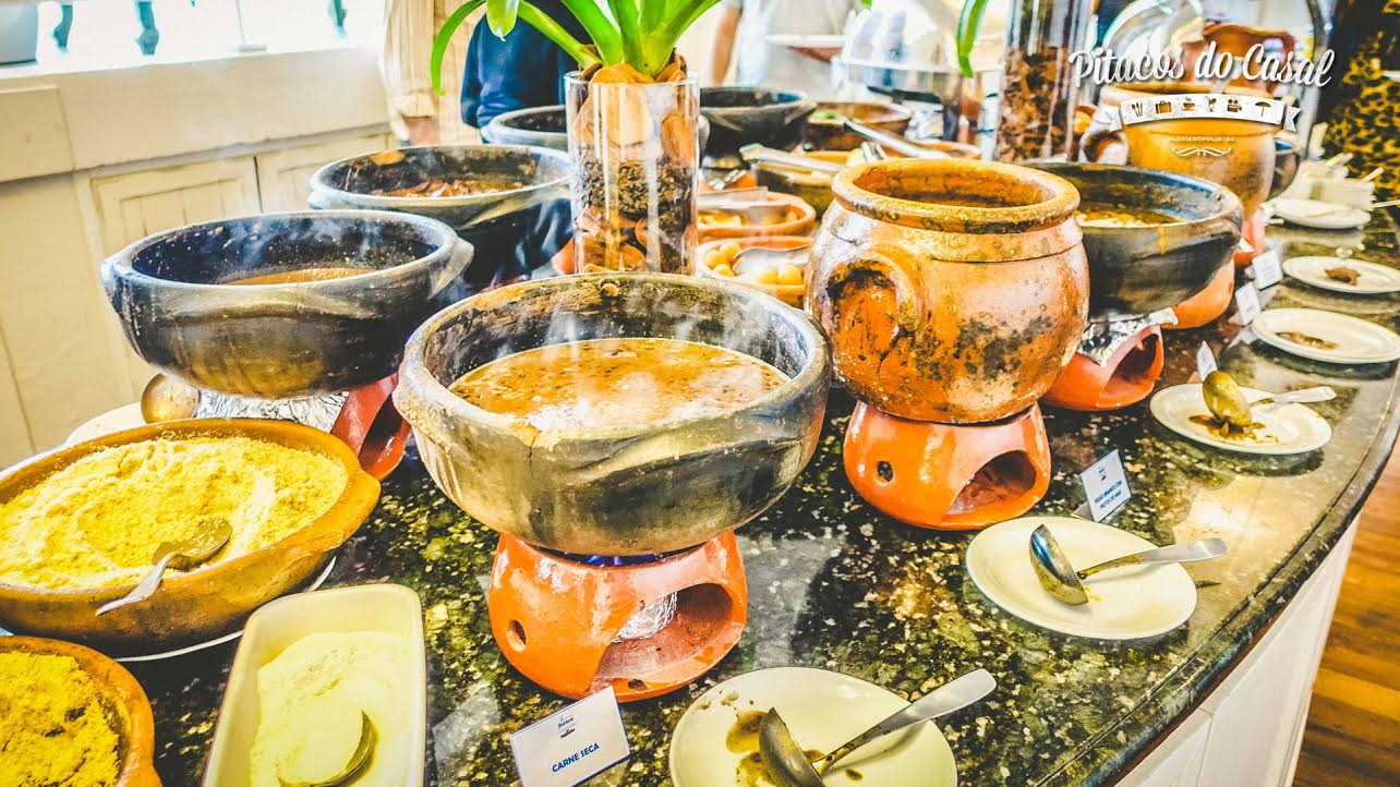 O buffet é composto de saladas, arroz, feijão com diversos tipos de carnes, acompanhamentos e sobremesas. E os clientes também podem apreciar cachaças artesanais com sabores de frutas, que ficam a disposição no salão. A cozinha é comandada pelo chef Rafael Campagnolo, que todo sábado traz dois tipos de feijoadas diferentes para o buffet, como a feijoada vegetariana e a feijoada de feijão branco com frutos do mar, além das tradicionais opções com paio, linguiça calabresa, carne seca e porco. Estava tudo muito saboroso.