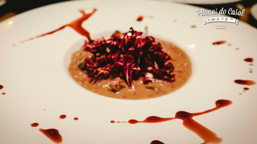 Gostamos bastante de todos os risotos. O de Filé mignon leva pedaços de mignon, redução de vinho malbec e radicchi roxo. O Maria Louca é com ragu de linguiça blumenau e banana frita, com um sabor bem marcante da linguiça. O Vegano é com shitake e manteiga de castanha, mais leve e bem gostoso.