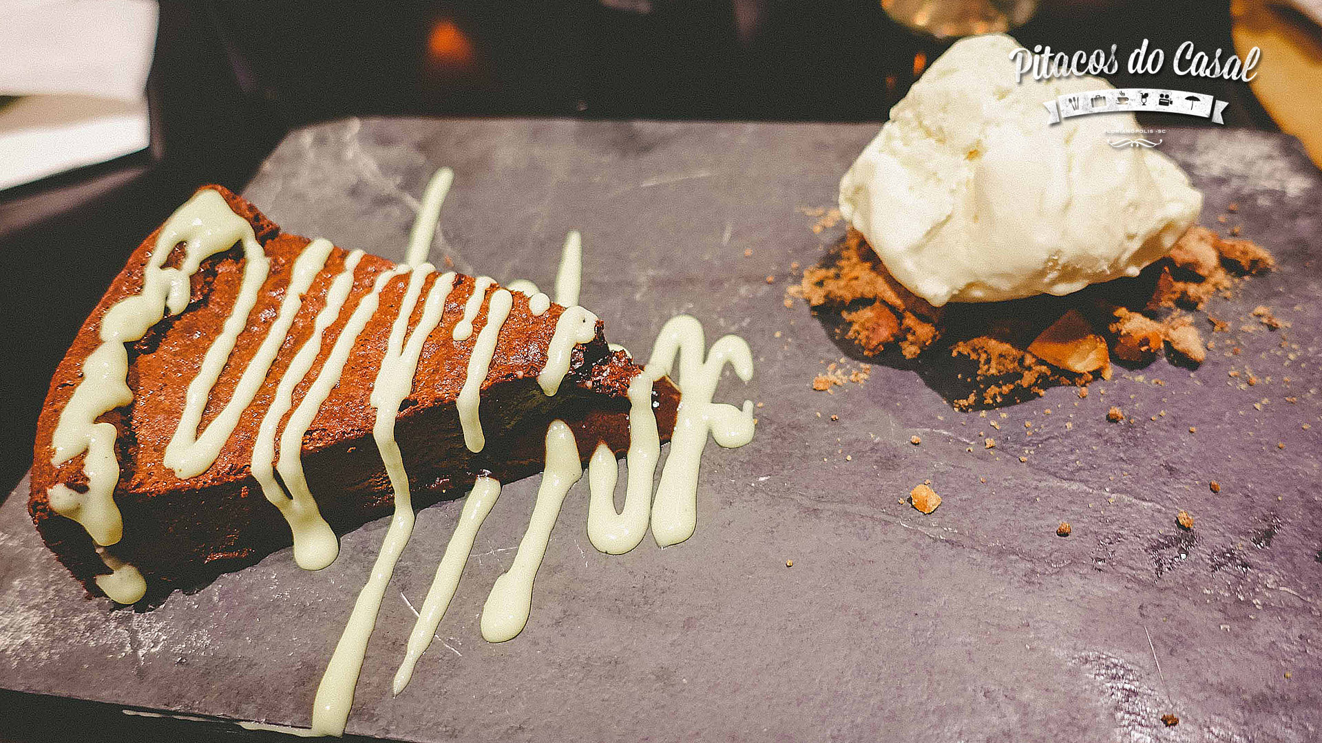 E por fim, o segredo de Dom Pedro II que é… segredo! Brincadeirinha, é um cookie de chocolate com Nutella, acompanhado de sorvete de mascarpone. Vem servido em uma caixinha, então vem escondido e é desvendado ao chegar na mesa. O cookie é macio, doce, maravilhoso.