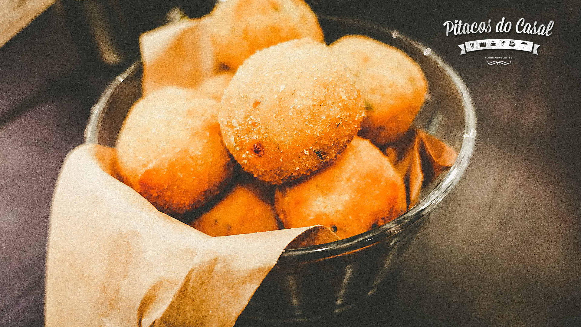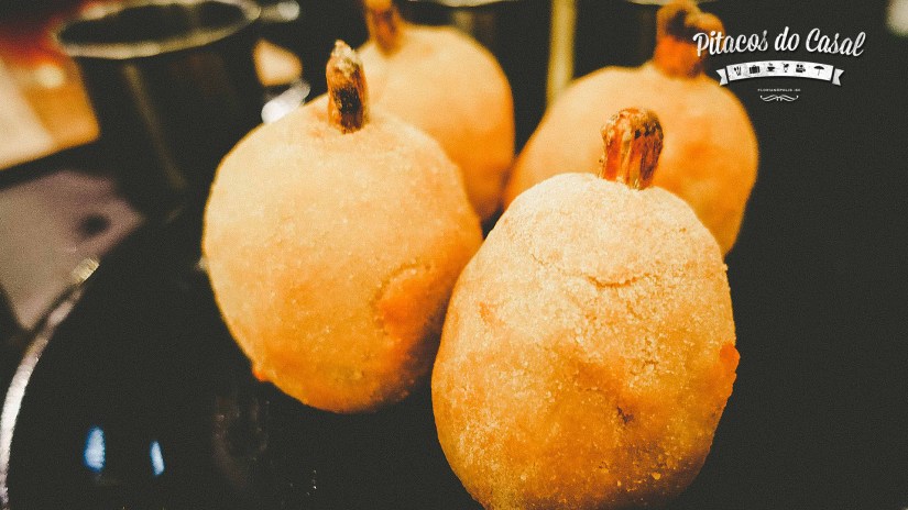 Dentre as porções de “fritaceira”, provamos o bolinho de feijoada, o bolinho de camarão, a coxa creme e a galinha fritadinha. Meu preferido foi o bolinho de feijoada, porque adoro feijoada, e os bolinhos ficaram bem saborosos. Mas o bolinho de camarão não ficou muito atrás não rsrs. A coxa creme é uma coxinha de frango envolta em uma massa de nata e provolone; essa massinha é muito boa, mas a quantidade de carne da coxinha é pouquinha, então espere mais sabor que quantidade. Já a galinha fritadinha é uma porção de tiras de frango fritas (chicken fingers), bem servida, ideal para ficar beliscando enquanto degusta um bom chope rsrs!