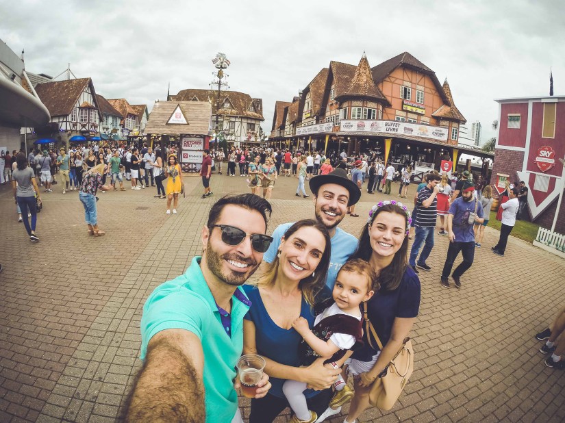 Bem, é muito chope, música, alegria! É conhecida por ter muita pegação. Mas fomos e comprovamos que tem espaço para curtir em família também. Esse ano quisemos aproveitar a festa com a Dorinha, e foi muito divertido.
