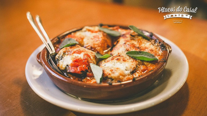 Por sugestão da casa, provamos, ainda, a Caçarola ao forno Berinjela à Parmeggiana, com molho de tomates, rodelas de berinjela, muçarela de búfala e parmesão. Tem bastante o sabor do molho de tomates, e o salgadinho do queijo gratinado, é uma boa pedida para dividir como entrada.