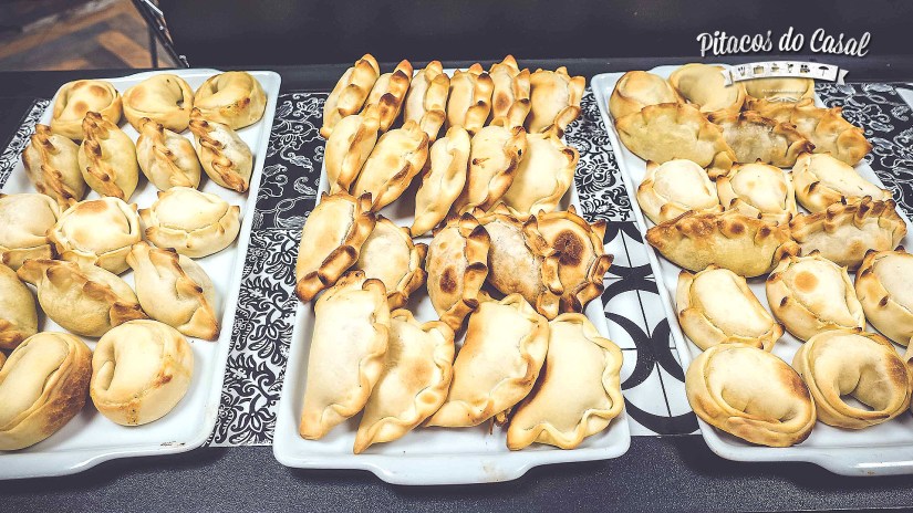 Na sequência, provamos as empanadas argentinas. São sete sabores disponíveis, e para cada uma, um formato na massinha: carne, frango, cebola e queijo, campestre (queijo mussarela, tomate e manjericão), hawaiana (lombo canadense, bacon, queijo mussarela e abacaxi), gorgonzola e nozes e vegana. Então tem para todos os gostos.