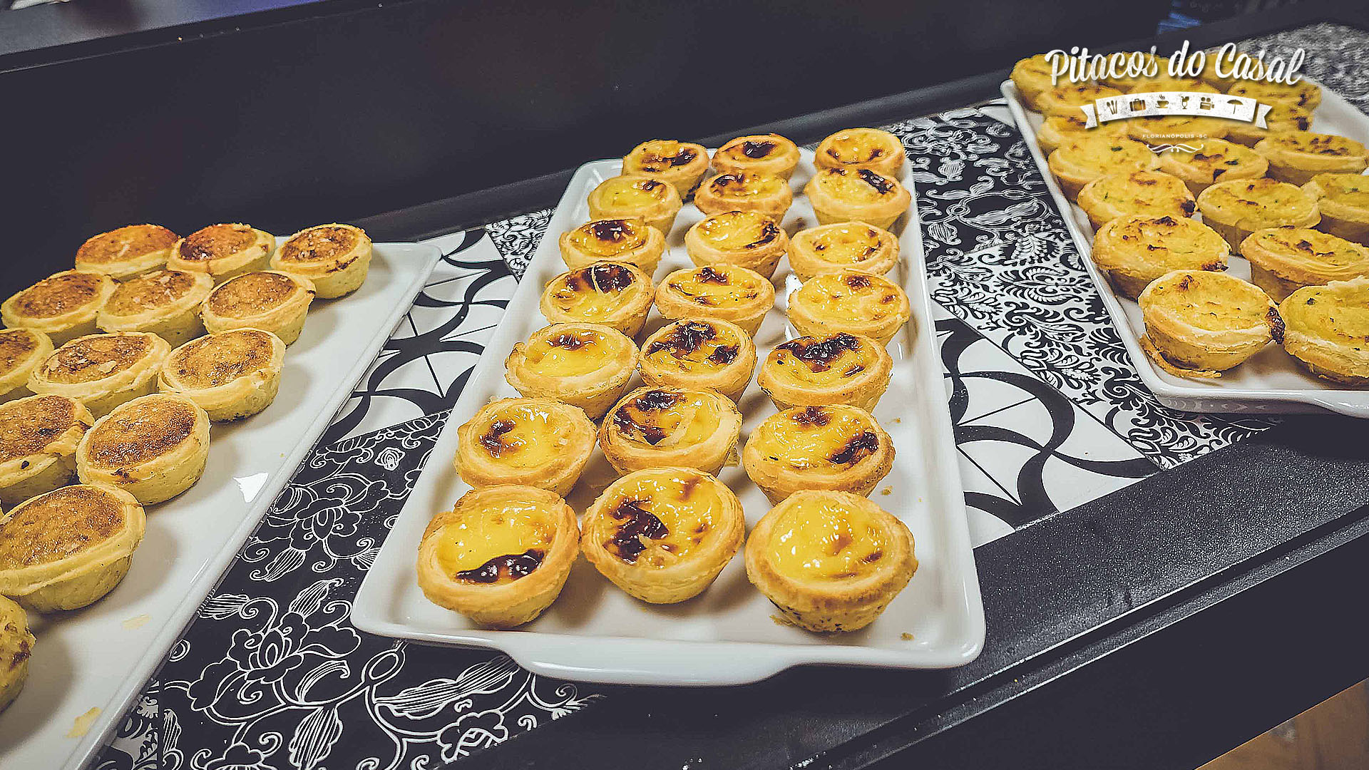 Fazendo a transição dos salgados para os doces, foram apresentados os Pasteis Portugueses, com os seguintes recheios: bacalhau, amêndoas e Belém. Para nós, é basicamente a massinha de empada, e os recheios são típicos de Portugal. O de Belém é o pastel de nata, um creme a base de gemas. Mas vou dizer que gostei mais do de amêndoas, docinho mas menos enjoativo na doçura.