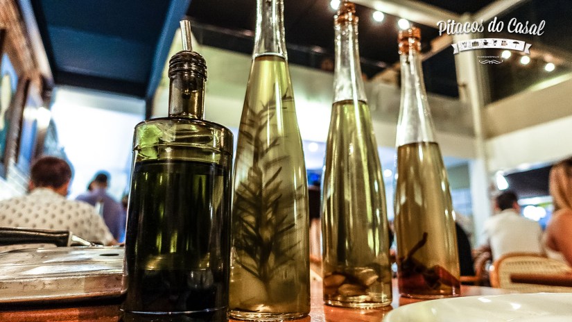 Quem gosta de um saborzinho extra na pizza, vale provar os azeites saborizados com alecrim, alho e pimenta. O Marcos adorou o de alecrim, já eu gostei mesmo do de alho. O de pimenta não precisa ter medo, que não é um tempero forte de molho de pimenta, só um leve sabor mesmo.
