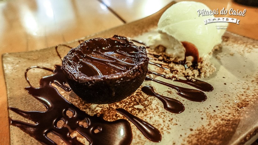 O Petit Gateau de Chocolate servido com sorvete de creme é divino, de comer rezando! É bem macio e o chocolate é delicioso, assim como o sorvete – eu adoro sorvete de creme nas sobremesas, e esse achei ótimo.