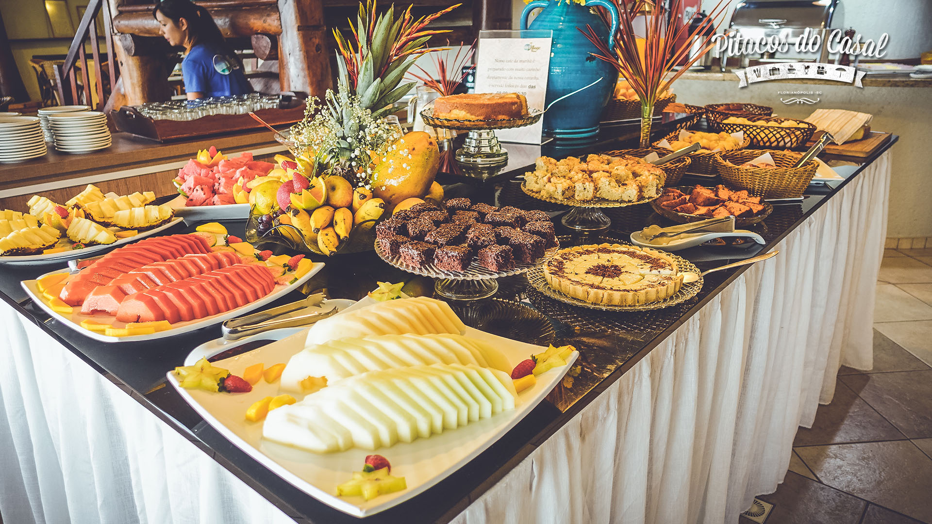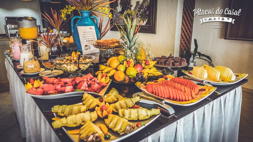 Por falar em café da manhã, ele é incluído na diária, e é muito bem servido, com diversas opções de pães, bolos, frutas, iogurtes, sucos… Perfeito para começar bem o dia no paraíso!