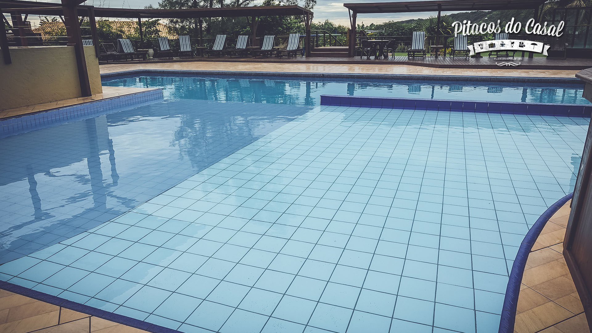 Junto à piscina externa, fica o bar da piscina, que serve drinks e petiscos.