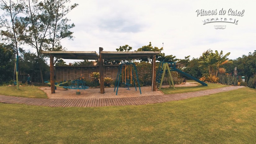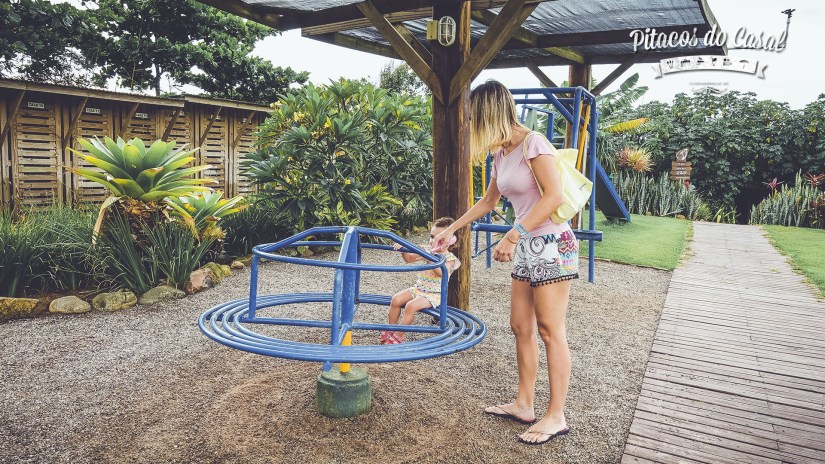 Junto ao playground estava instalada uma linha de slackline, e nos divertimos ali tentando nos equilibrar! Também vale a tentativa.