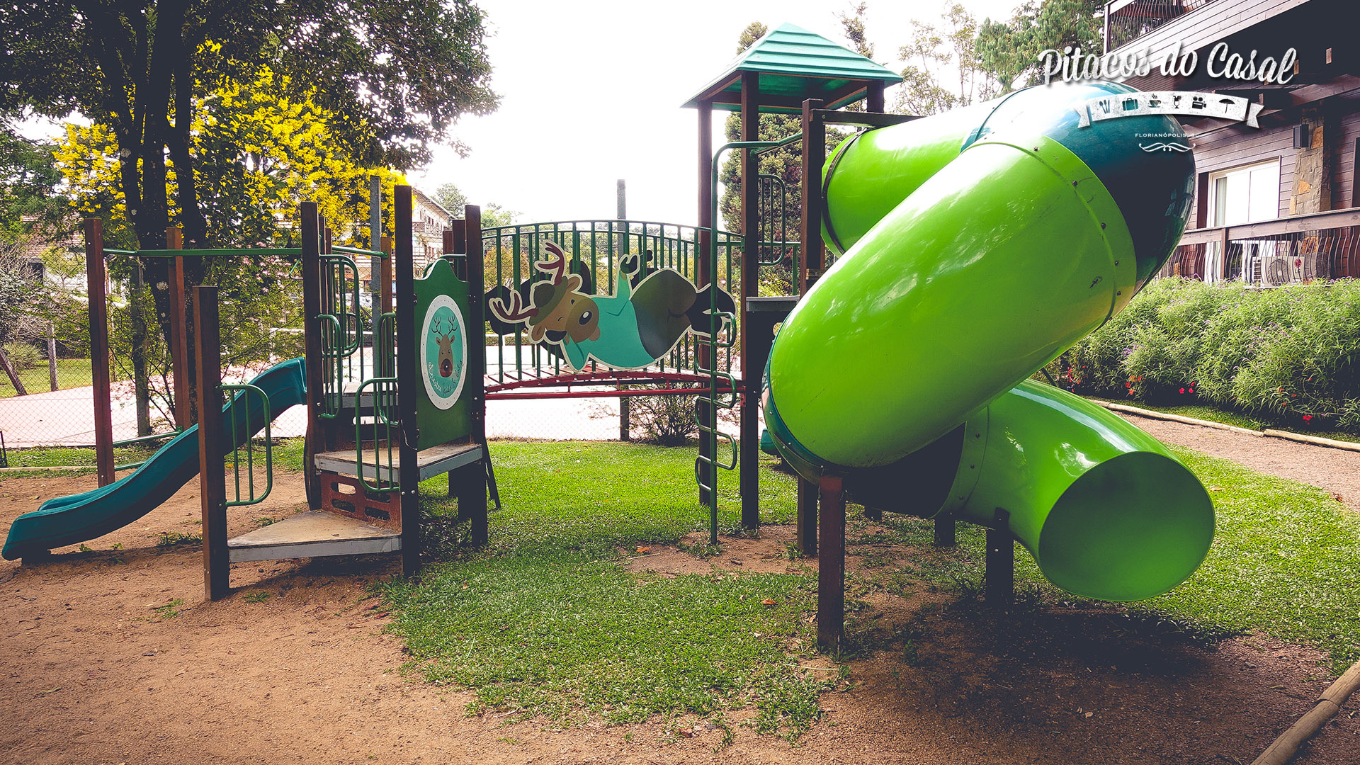 Ele não fica exatamente no Centro de Gramado, mas também não fica muito longe – 1,7 km da Rua Coberta, o que um adulto pode fazer facilmente a pé, mas já dou uma boa informação: o hotel dispõe de uma van que leva e traz os hóspedes em 4 horários por dia, de de manhã até a noite, até a Rua Coberta. Nós usamos a van, e rapidinho chegamos ao centrinho, menos de 5 minutos.