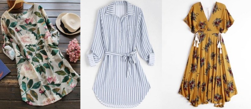 Os vestidos com corte em trapézio deixam a cintura marcada e valorizam demais o corpo feminino. Tem muuuuitas opções desse tipo de vestido na Zaful (veja mais detalhes). Confere as opções que eu selecionei para mostrar aqui: