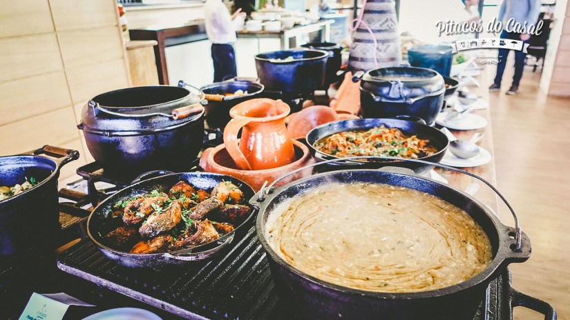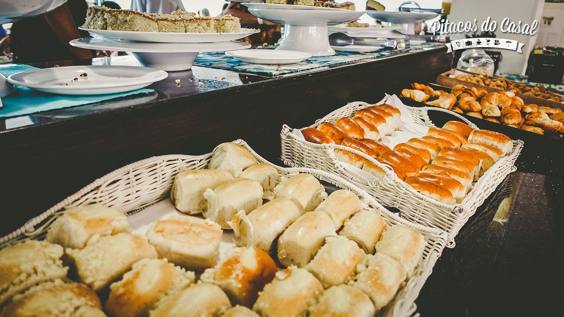 No almoço, entretanto, o restaurante costuma oferecer um buffet para consumo à vontade. Conta com diversos pratos de saladas e pratos quentes. Como ficamos hospedados no fim de semana em que Florianópolis comemorava aniversário, o buffet do dia em que almoçamos foi montado com pratos da culinária manezinha, com frutos do mar, pirão etc. Como diz o manezinho, “arrombassi”, porque olha, a comida estava deliciosa! Tudo bem preparado e bem saboroso.