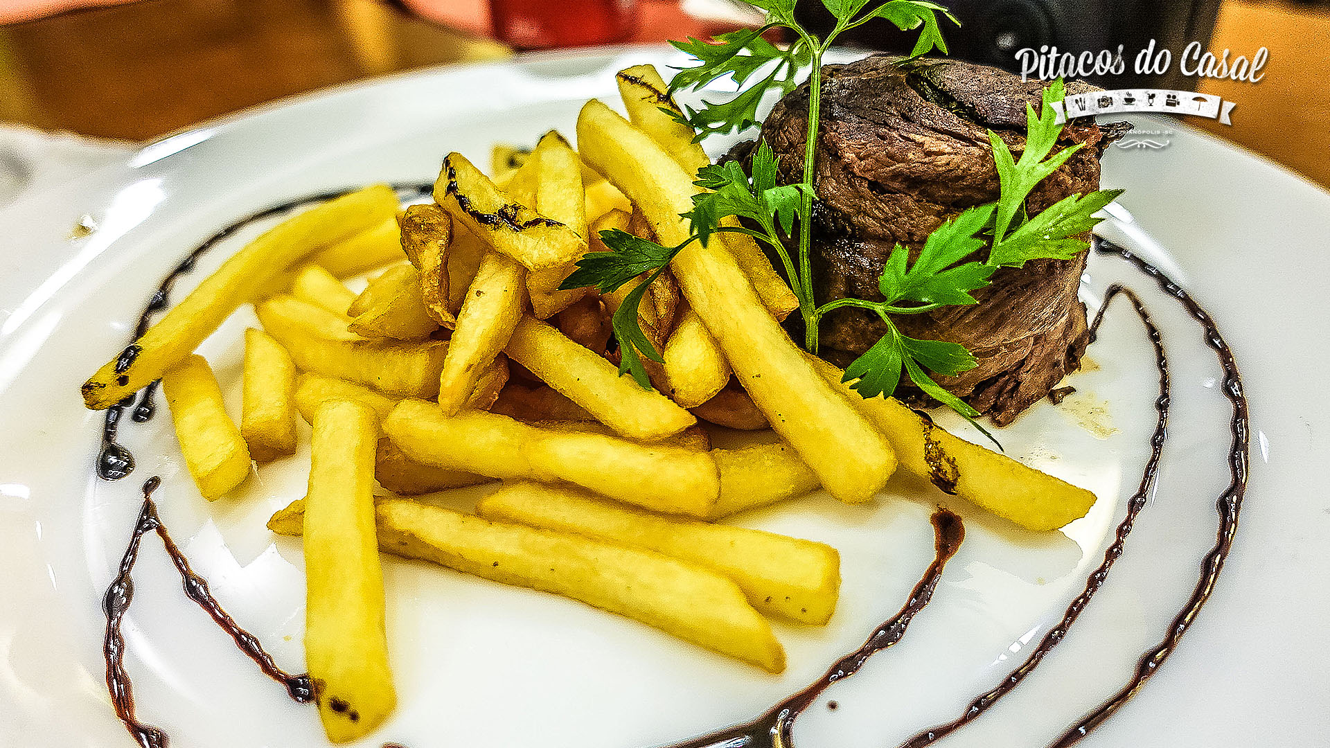Optamos pelo Mignon, que veio acompanhado de batatas fritas. A apresentação do prato não foi das mais bonitas, mas o sabor era melhor que o visual, e o ponto da carne veio do jeito que gostamos.