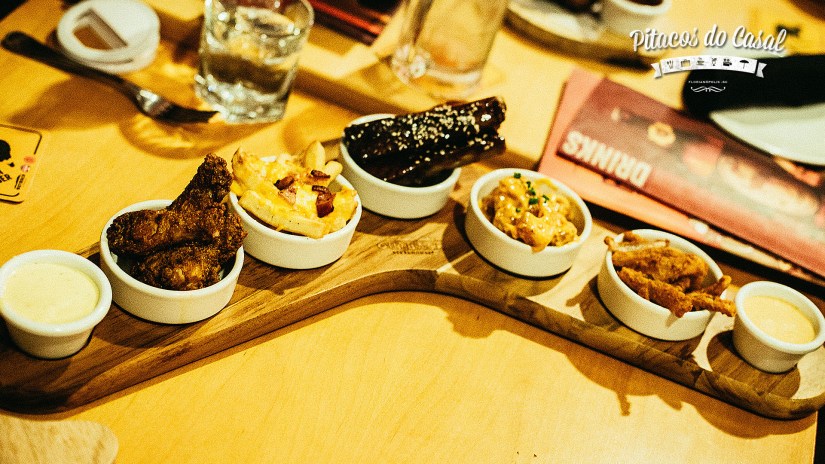 A ideia é perfeita para quem está na dúvida de qual aperitivo pedir, ou para quem quer mesmo um pouquinho de cada. As porções não são muito grandes, eu diria que é ideal para 2 pessoas.
