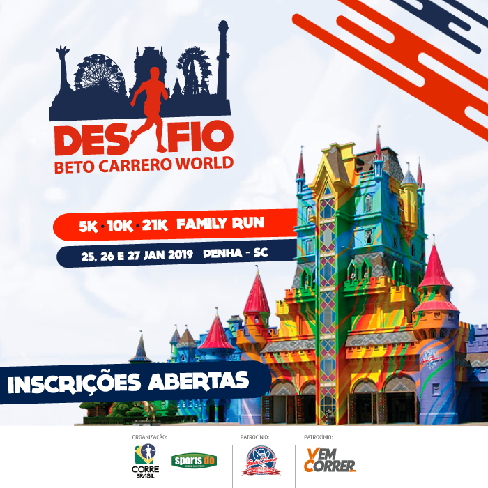 O ano já começa corrido, ou correndo, ou com corrida rsrsrs… com o Desafio do Beto Carrero, que é novidade no calendário esportivo no Brasil e acontece nos dias 25, 26 e 27 de janeiro, no parque do Beto Carrero, em Penha/SC. São 3 dias de corrida com presença de personagens do Parque Beto Carrero World, muito divertido né?!