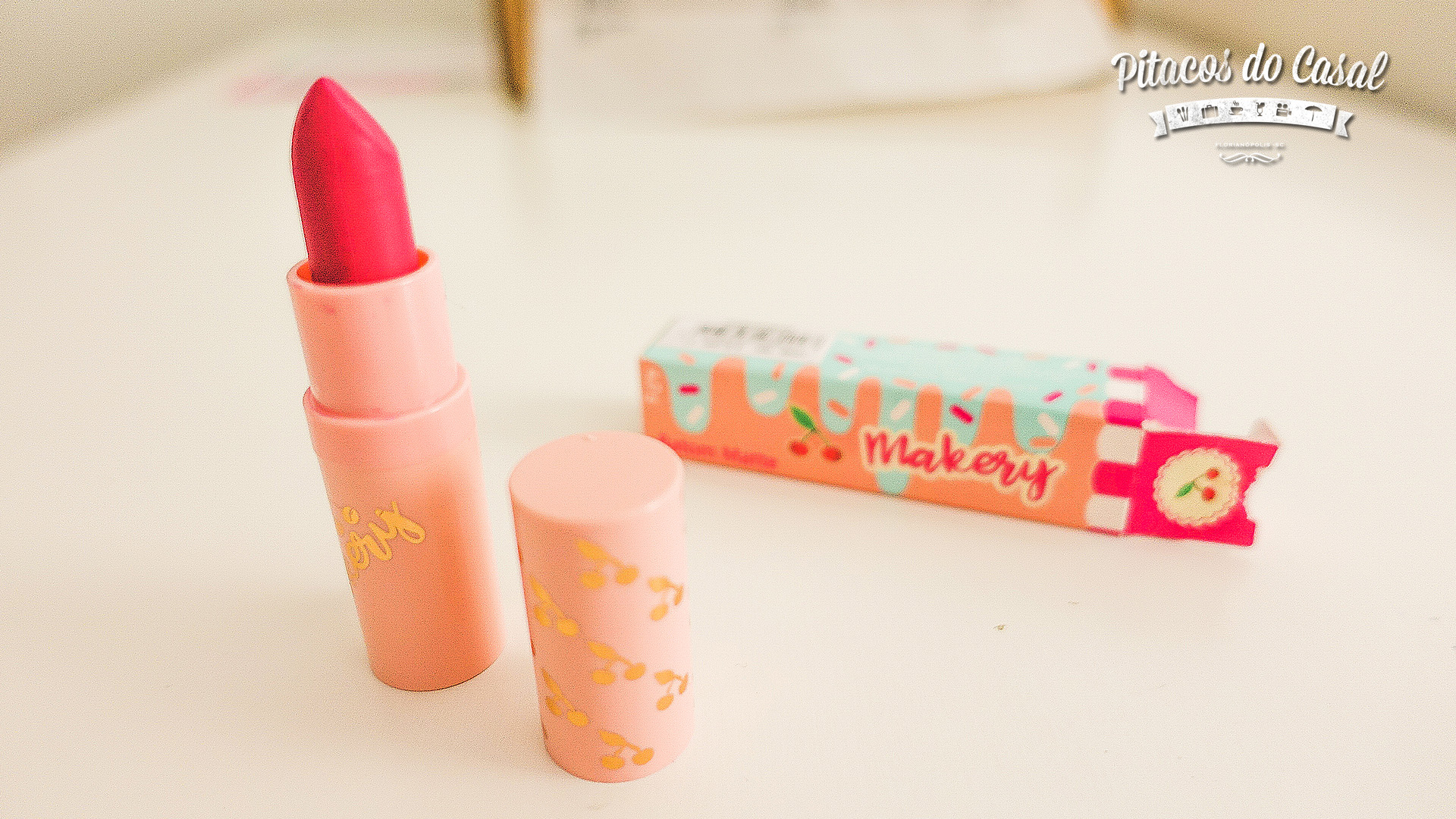 O batom matte da Makery é da cor Canudinho, um rosa bem forte, bem lindo, e o batom é bem cheiroso. Adorei a cobertura nos lábios, e ainda conheci essa marca que é uma fofura. Makery é make + bakery (padaria) e os produtos são todos numa pegada tipo padaria fofa.