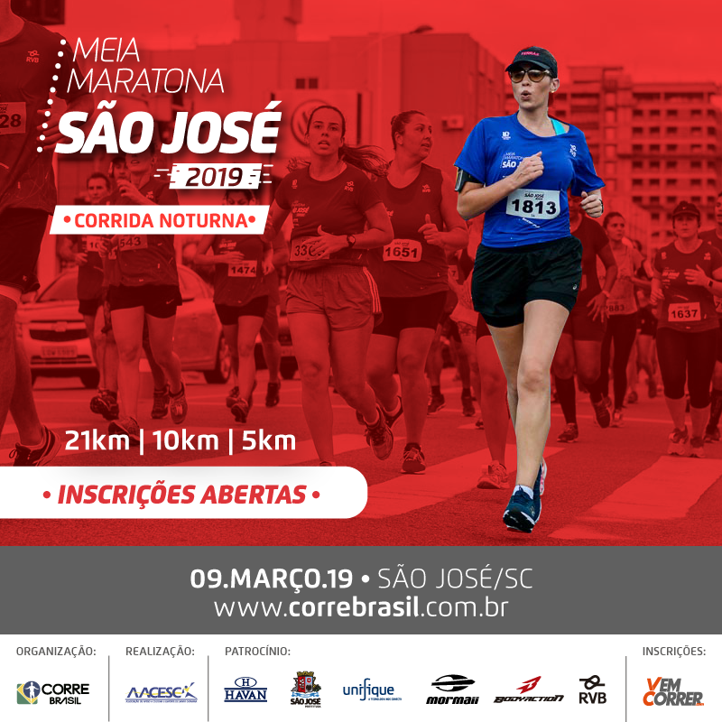 Mais informações e link para inscrição no site da Corre Brasil: https://www.correbrasil.com.br/meia-maratona-saojose2019