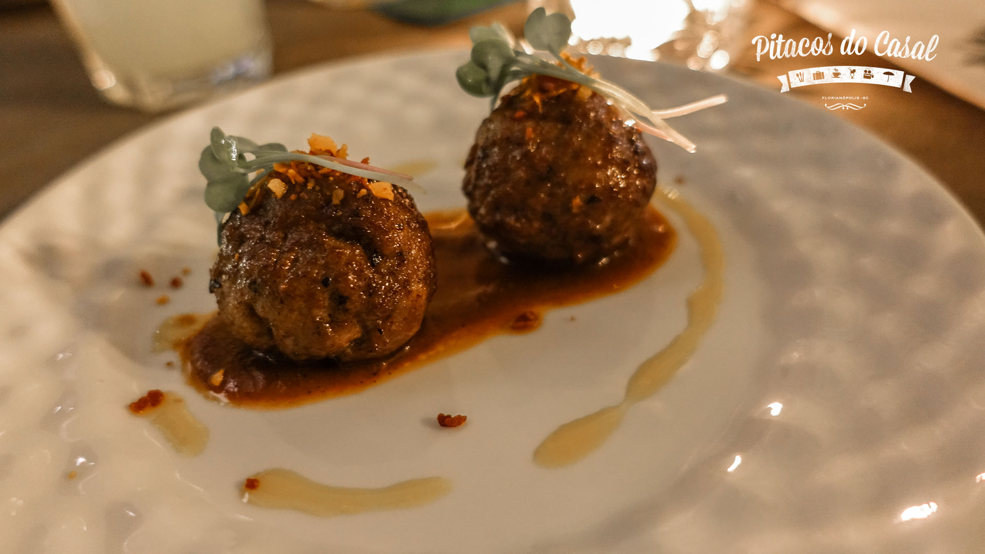 Fomos provar o Menu Degustação, e nosso menu foi composto por Duo Meatball como entrada, Fettuccine artesanal com ragu de cordeiro como principal, e Torta de doce de leite com sorvete de creme de sobremesa.