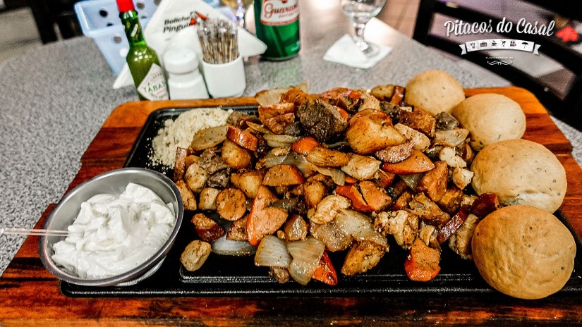 – Tábua Pinguim Strike, com filé mignon, filé de frango, calabresa, cebola, aipim, bacon e salsicha. Ainda acompanha pãozinho, farofa e sour cream.
