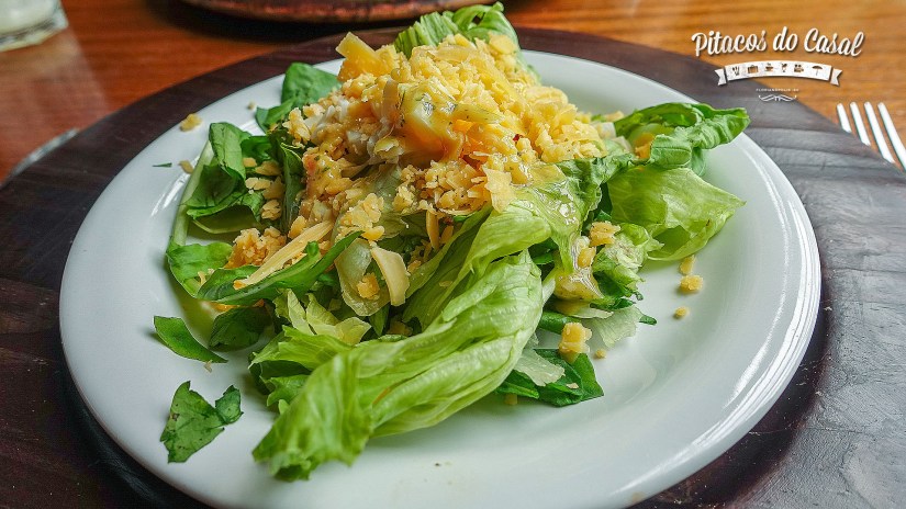 Em seguida, é servida a Salada do Chico, uma salada com alface, rúcula, palmito, tomate seco e queijo, temperada com um molho especial (tipo um vinagrete).
