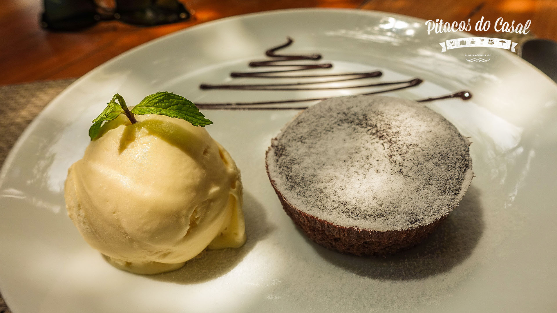 A sobremesa não faz parte do Menu Executivo, mas pode ser pedida à la carte. Fechamos nosso almoço com um Petit Gateau de chocolate, acompanhado de sorvete (R$25) e uma Panna Cotta de limão siciliano com calda de frutas vermelhas (R$21).