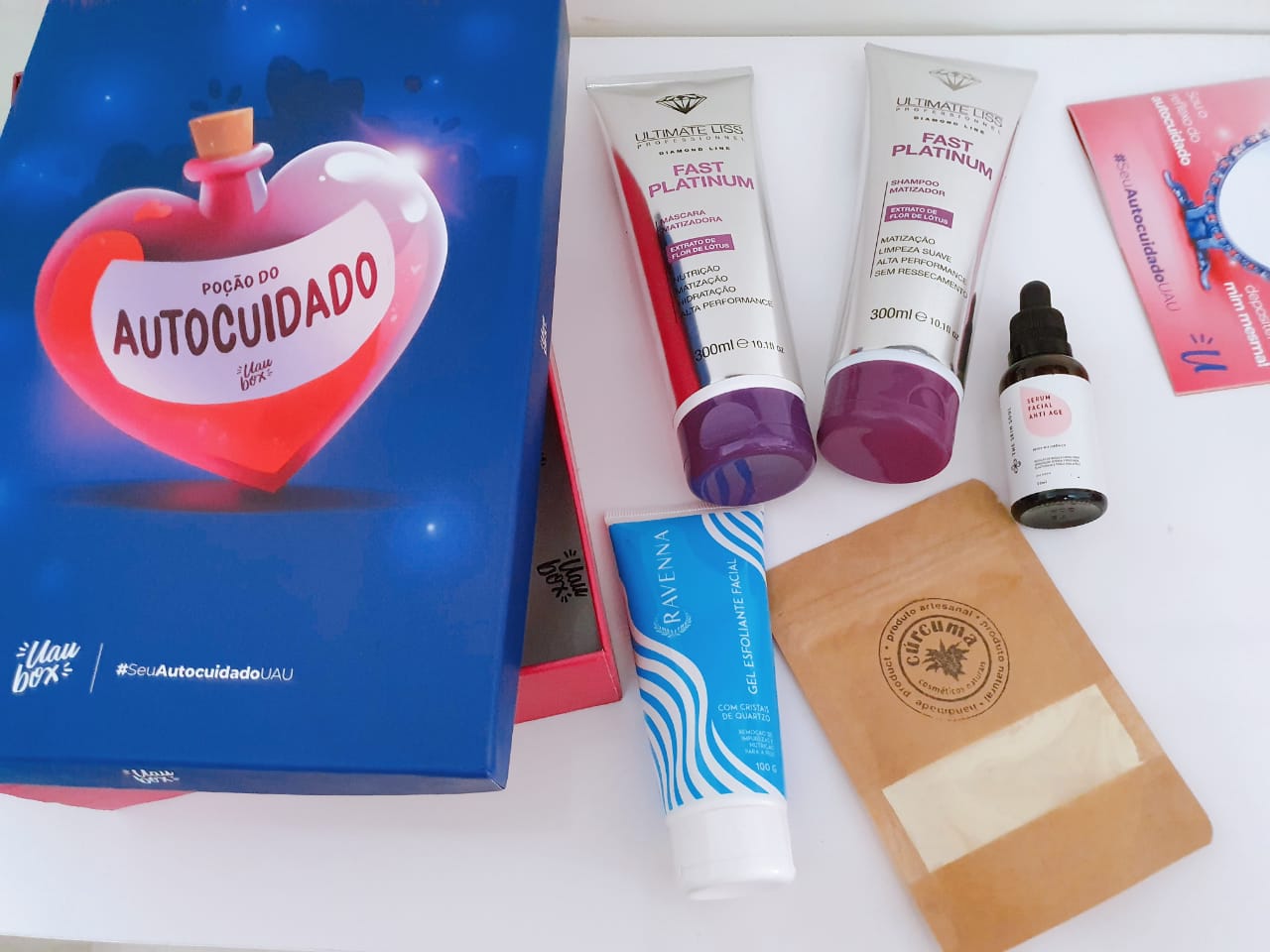 Somando todos os produtos da minha box esse mês, dá R$270. Mas a assinatura da UAU Box vai de R$69,90 no plano semestral a R$84,90 se comprar só 1 mês.