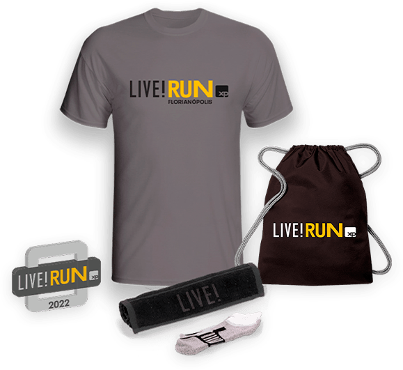 O kit para os participantes contém produtos da coleção LIVE!: camiseta, meia, toalha, sacochila e medalha finisher. A camiseta de malha poliamida tem as tecnologias Easy Care e Quick Dry, que mantêm o corpo seco e fresco durante a corrida.
