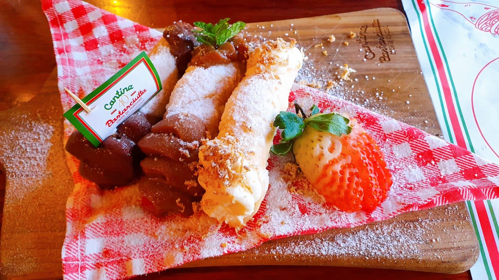E para quem quer uma lembrança mais italiana, com a doçura um pouco mais equilibrada e uma crocância, pode pedir o Cannoli – 3 cannolis, cada um com os seguintes recheios: creme de limão siciliano, ganache de chocolate e doce de leite.