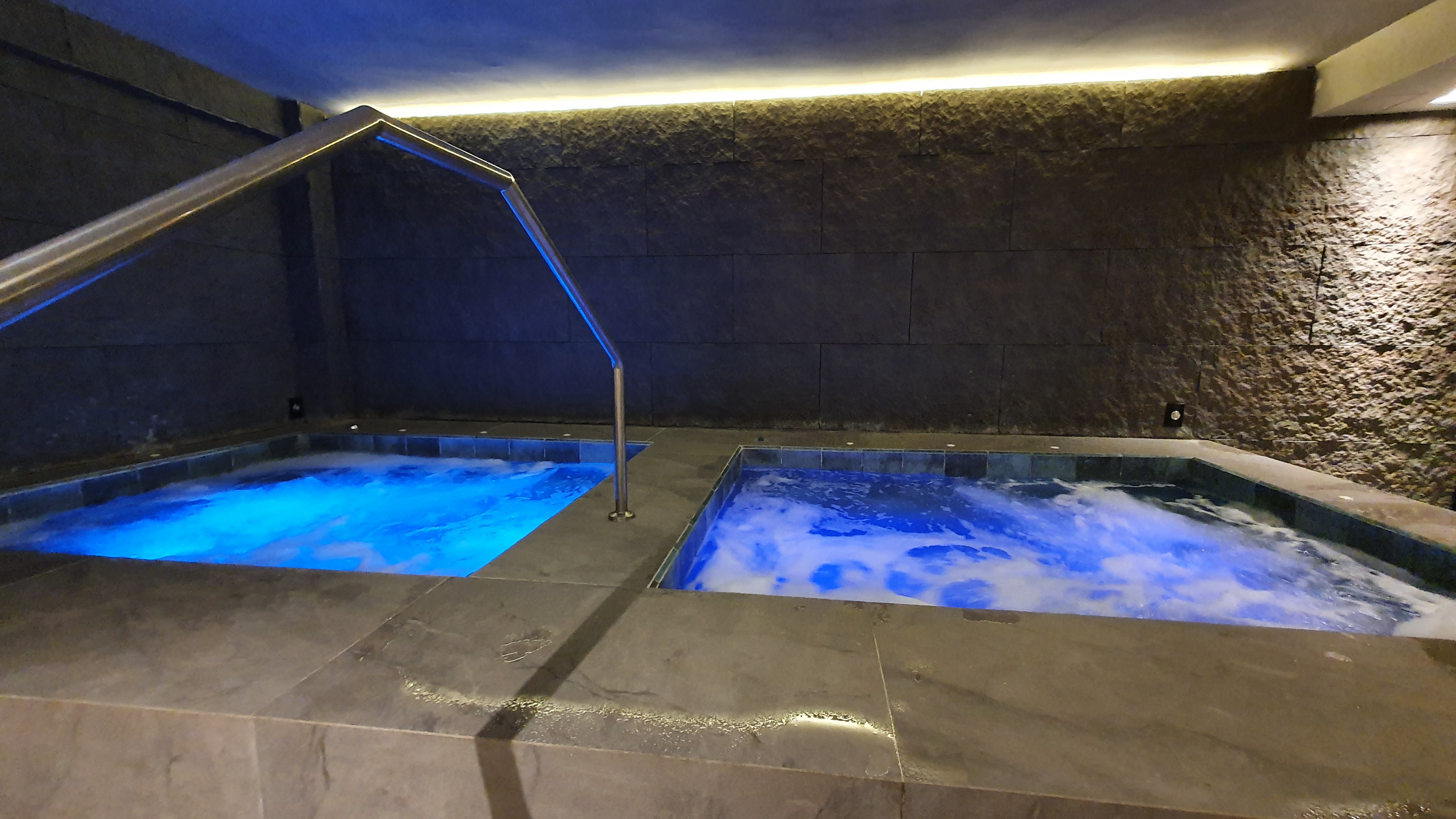 Nessa área tem piscina infantil, mais rasinha, e 2 banheiras com hidromassagem.