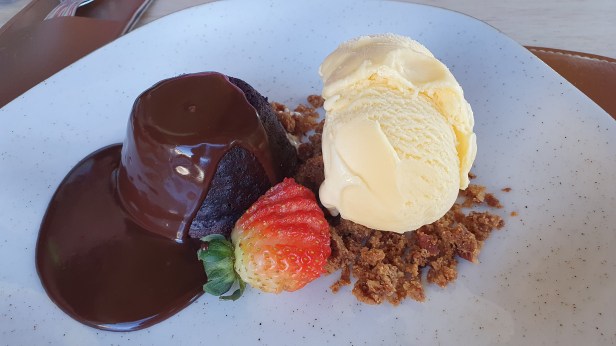 Para fechar a experiência, pedimos o Petit Gateau (R$38) que foi dizer, um dos melhores da vida! Bolinho de chocolate com gelato de baunilha e areia de pralinê.