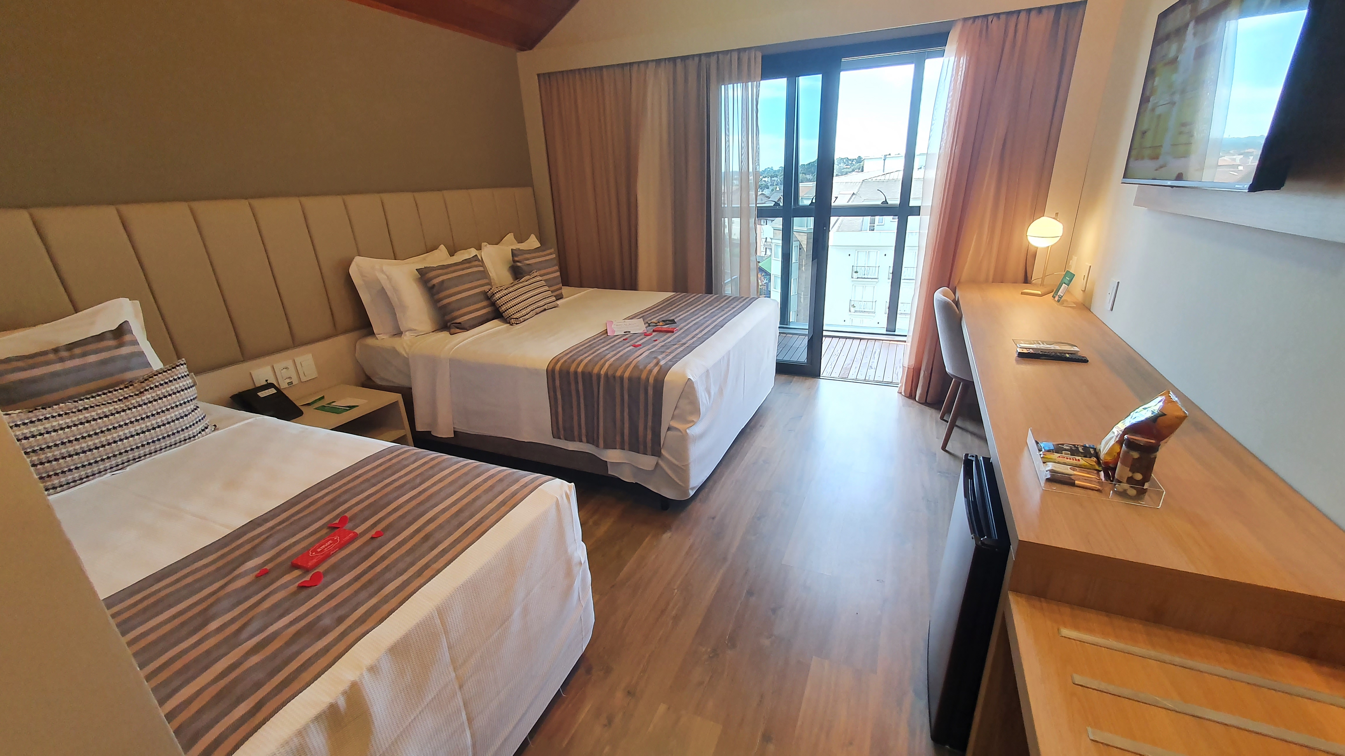 São 3 torres de quartos e se você pegar um virado para a frente do hotel, vai ter a vista para o centrinho de Canela. Aliás, fica bem próximo à Igreja de Pedra, alguns minutinhos caminhando.